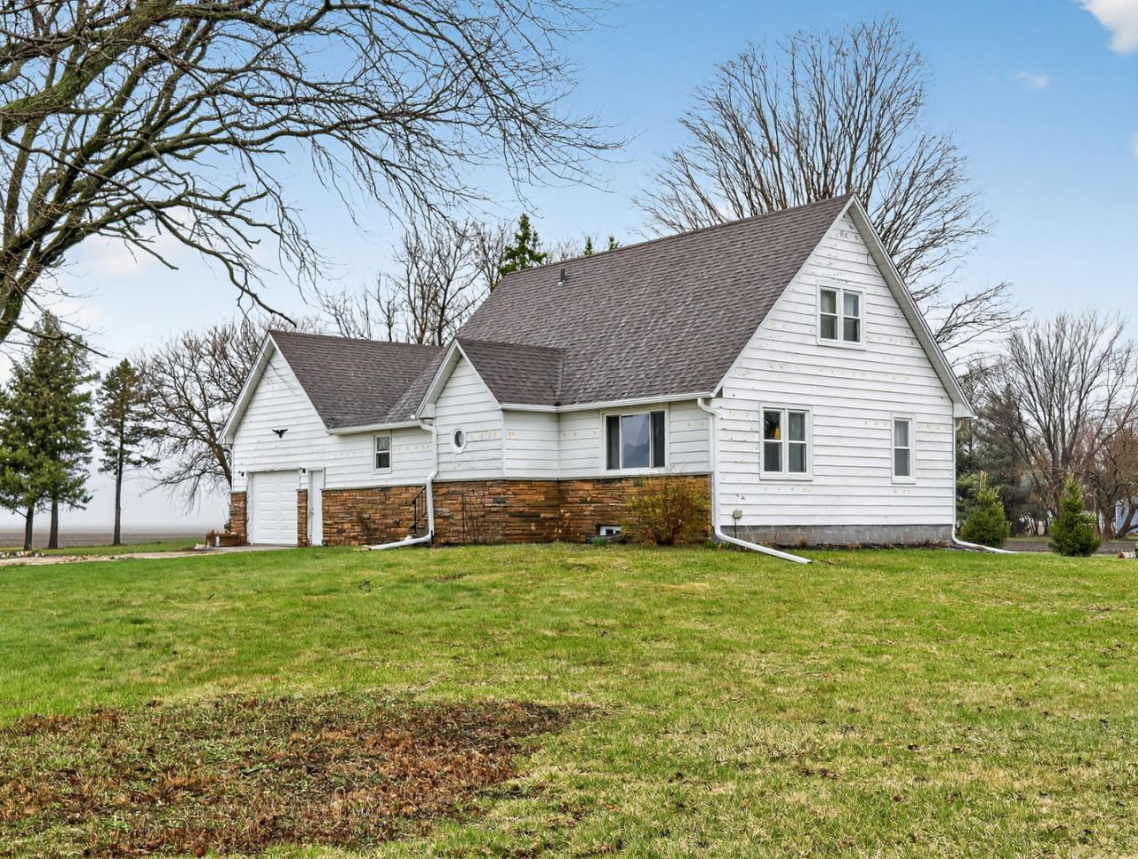 Set on a rare double lot totaling nearly four acres, this 4-bedroom, 2-bath home offers endless potential. Inside you'll find a bright living room & dining room, spacious country kitchen with pantry, breakfast bar and newer appliances (2023) including a cooktop and built in oven. The main level offers two bedrooms and a full bath, while the second floor includes two additional bedrooms and another full bath. An unfinished basement offers room to expand along with a large laundry area with sink. The oversized 1-car attached garage adds everyday convenience. Outside the property features 12 fruit trees, a greenhouse and a 48x72 Morton shop building with a wood burner. The front portion is insulated and can be closed off from the rear storage area, making it perfect for a workshop, hobby space, or additional storage. The home will be resided the week of April 6th. Brand new windows were installed in 2025 and the home also has solar panels. This property is a unique opportunity to enjoy modern updates, tranquility and with the space to make it your own.