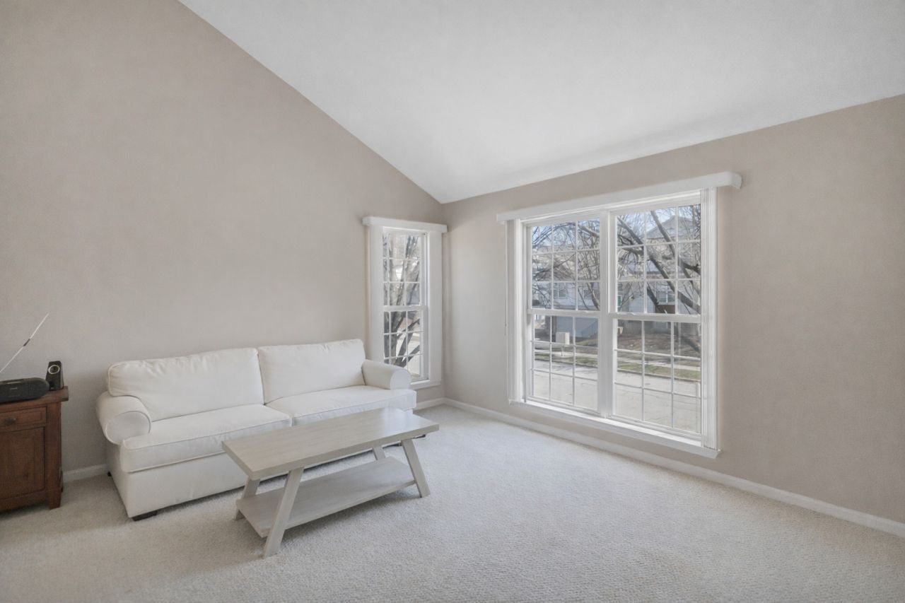Well-maintained 2-bedroom end-unit raised ranch in the desirable Apple Tree community of West Chicago, conveniently located near scenic ponds and surrounded by mature trees. The spacious living room features vaulted ceilings and abundant natural light, flowing into the dining area with slider to the balcony. The kitchen offers ample cabinet and counter space, a pantry, and a cozy eating area. Primary bedroom includes a walk-in closet and direct access to the full bath with double sinks, while the second bedroom is perfect for guests. The finished lower level adds versatile space with a family room that could serve as a third bedroom, a full bath, and laundry/utility area. Enjoy relaxing mornings on the balcony overlooking professionally landscaped common areas. Close to shopping, dining, parks, Currier Elementary School, Central DuPage Hospital, and major highways, this home offers a move-in-ready, peaceful setting with everything you need nearby.