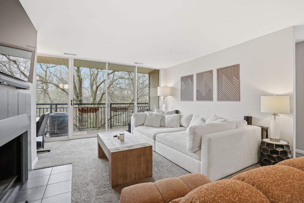 Welcome to unit 3F, your new move-in ready condo in the Four Lakes Community in Lisle! Living in this community offers all the entertainment imaginable with 4 pools, tennis and volleyball courts, a ski hill, a convenience store, golf course, and more! This open concept unit features 1 bedroom and 1 bathroom with plenty of upgrades ready for a new owner! Floor to ceiling windows in both the living room and bedroom give beautiful views and natural light. You'll love to utilize the wood burning fireplace in the living room for cozy nights in! The oversized balcony is an amazing bonus for entertaining outside for the upcoming season. All new stainless steel kitchen appliances 2023, New furnace and AC unit 2025, 2-in-1 washer and dryer 2023, Ecobee thermostat. Prepare for a fun and active lifestyle unlike any other community. Close to endless shopping and dining, walking trails, and highway access. Don't miss your opportunity to tour this beautiful home, schedule your private showing today!