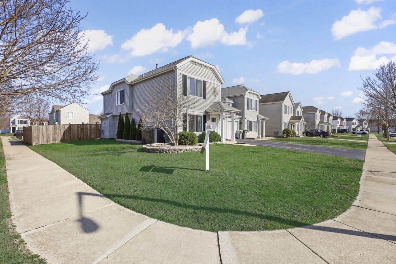 Welcome to Roxbury Manor aka 2420 Roxbury Ln. A beautifully updated half-duplex in the heart of Montgomery. Offering the perfect blend of style, functionality, and freedom with no HOA! Situated on a desirable corner lot, this 3-bedroom, 1.1 bath home checks all the boxes. Step inside to find durable wood-look vinyl flooring flowing throughout the main level, creating a warm and cohesive feel. The updated kitchen is a standout, showcasing sleek quartz countertops, modern gray cabinetry, and stainless steel appliances. It opens seamlessly into the combined dining and living space, where a cozy gas fireplace and abundant natural light make it the perfect place to gather. Upstairs, you'll find all three bedrooms along with the convenience of second-floor laundry. The spacious primary suite impresses with vaulted ceilings, a walk-in closet with built-in organizers, and direct access to a beautifully updated Jack-and-Jill bathroom. This spa-inspired space features a neutral black-and-white palette, double vanity, shower/tub combo, elegant white porcelain tile, and a stylish coffered ceiling that adds a touch of sophistication. Make your way to the fully fenced backyard complete with a patio and gazebo, ideal for relaxing or entertaining. 2 car tandem garage perfect for vehicle space or additional storage. With close proximity to parks/trails, shopping/dining, I88 expressway, downtown Oswego and much more, this one is sure to be called home!