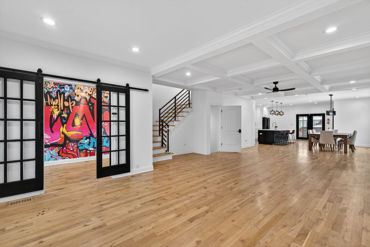 Stunning 4-bedroom, 3.5-bath modern farmhouse offering over 4,000 square feet of thoughtfully designed living space where no detail has been overlooked. Step into a sun-drenched, wide-open main level featuring a seamless flow from the inviting living area to a spacious dining room and a beautifully appointed kitchen. The kitchen is a showstopper that features an oversized island with breakfast bar, farmhouse sink, black stainless steel appliances, range with range hood and pot filler, dual built in ovens and a walk in pantry. An office with sliding French doors, a convenient half bath and mudroom with built in bench complete the first floor. Upstairs, you'll find three well-sized bedrooms, a full laundry room, and a versatile loft. The expansive primary suite features a fully outfitted walk-in closet and a luxurious en-suite bath with massive full spray shower and dual vanity. Both secondary bedrooms share the hall bath with soaking tub. The fully finished basement adds incredible living space with a family room with a full wet bar, 4th bedroom, third full bathroom, den and additional storage space. Enjoy outdoor living with a charming front porch complete with porch swing, a deck off the kitchen that leads to the spacious fully fenced backyard with a fire pit plus a covered patio area beneath the deck. Additional highlights include solar panels and an upgraded electrical panel ready for a future EV charger in the 2 car garage. Conveniently located near shopping, dining, and everything Berwyn has to offer, this exceptional home blends modern amenities with timeless style.