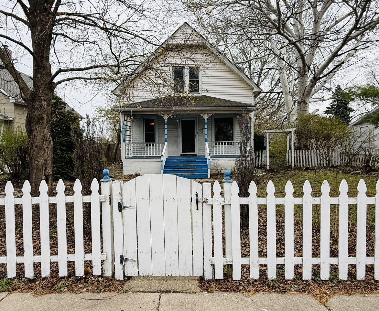 Stop at the white picket fence! Come inside and find many updates with this 4 bedrooms, 1 bath home and another roughed in bathroom with laundry on main level. Newer main floor master bedroom just needs to have drywall finished as well as the adjacent master bath that's roughed in. The kitchen has granite countertops and stainless appliances and next to the separate dining room. Custom ceiling panels, hardwood floor and trim throughout the main level and updated vinyl windows and breaker box. Add your personal touch with paint. The upstairs offer two additional bedrooms. Partially fenced yard and partial basement. Conventional Loan or Cash only. ESTATE SALE, SOLD AS-IS.