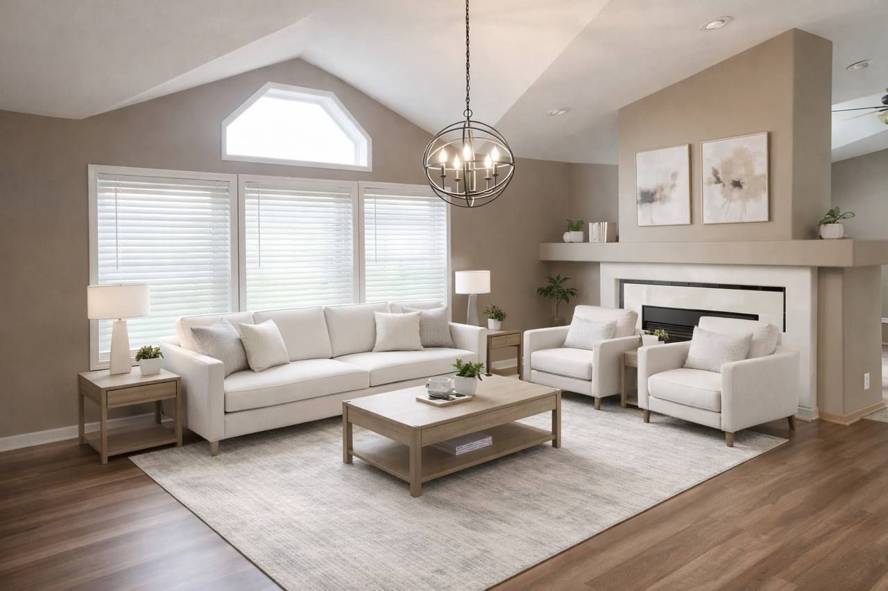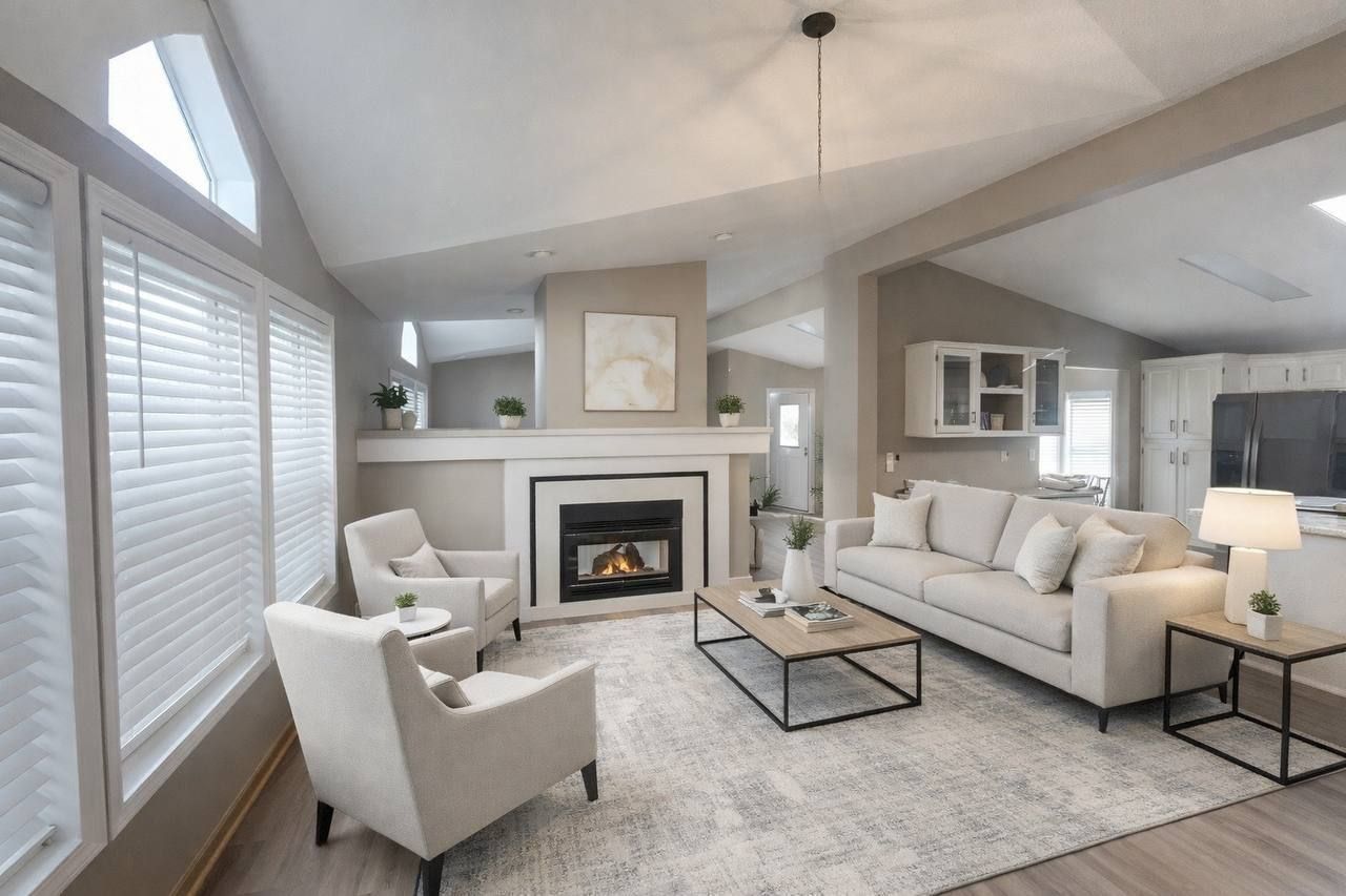 Welcome to luxury living in the premier 55+ gated community of Maple Brook, where this stunning 1,826 sq. ft. Schult Oakwood model sits perfectly on a private corner lot backed by a quiet easement and lush common area. This meticulously maintained all-drywall home boasts an open-concept floor plan featuring dramatic high origami ceilings in both the living and family rooms, centered by an elegant see-through gas log fireplace that connects the dining and family spaces. The chef's kitchen is a true centerpiece, showcasing crisp white cabinetry, a built-in desk with overhead storage, and a massive social island, all topped with premium thick granite counters and complemented by newer Samsung appliances and 2023 laminate flooring. Recent high-end upgrades provide peace of mind and modern comfort, including a new furnace (2021), fresh paint throughout, plush carpet and pad (2022), and updated fixtures and fans. The thoughtful layout includes a spacious laundry room with a newer stainless tub and granite counters, a huge garage with a long driveway, and professional landscaping. Enjoy the security of a 24/7 guarded entrance and the convenience of Chicago water/sewer in a serene, age-qualified setting designed for the ultimate relaxed lifestyle.