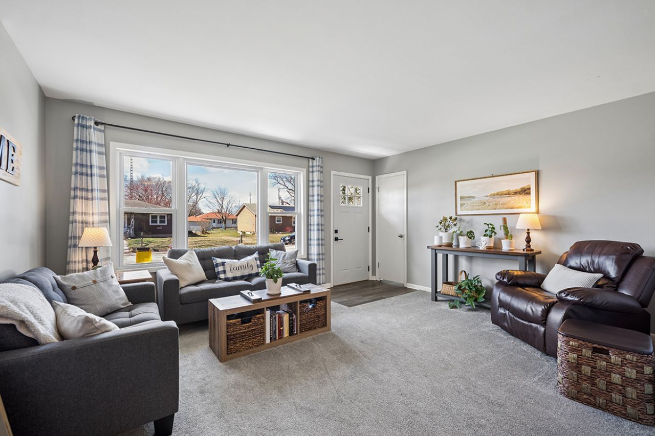 Prepare to fall in love! Run don't walk to this super sharp updated remodeled ranch! Newer siding, newer windows, updated lighting, newer deck, newer central air, newer furnace, newer refrigerator, newer stove, newer portable dishwasher, newer washer & dryer, newer flooring in laundry/mud room, newer flooring in 2nd bathroom, newer front exterior door, lots of fresh paint, newer recessed lighting, updated/remodeled family room & Laundry/mud room, newer reverse osmosis, newer water softener, newer water heater, newer sliding glass doors to patio, newer front exterior entrance door, newer garage door opener, newer basement access with newer stairway, newer attic insulation, newer crawl space insulated foundation, newer ship-lap accents, fresh paint and decorated like a pro! Dry basement! Vaulted & beamed ceiling in family room with recessed lighting, and sliders to patio. A gorgeous brick floor to ceiling fireplace/as-is/decorative only, but great ambience! The remodeled Kitchen features newer appliances, ceiling fan w/lights, and a pass through to the dining room with a breakfast bar. Dining room is complimented with the accented ship-lap wall. Living room is open and bright with newer windows and newer front door, and features newer access to the basement with a newer stairway. Bathrooms are sharp and squeaky clean like the rest of the house! Refrigerator 2026, washer & gas dryer 2026, bathroom flooring 2026, furnace 2025, central air 2025, water heater 2025, dining room lighting 2025, attic and crawl space insulation 2025, deck 2024, automatic garage door opener 2024, laundry room/mud room flooring 2024, remodeled kitchen 2022, stove 2022, front exterior door 2021, windows 2021, vinyl and stone siding 2021, remodel family room & laundry/mud room 2020, recessed lighting in family room & Laundry/mud room 2020, basement access w stairway 2020, sliding glass doors 2020, ship-lap accents 2020, French pane door 2020, water softener 2020. Painted in todays colors and decorated like a pro! Pristine move in condition!