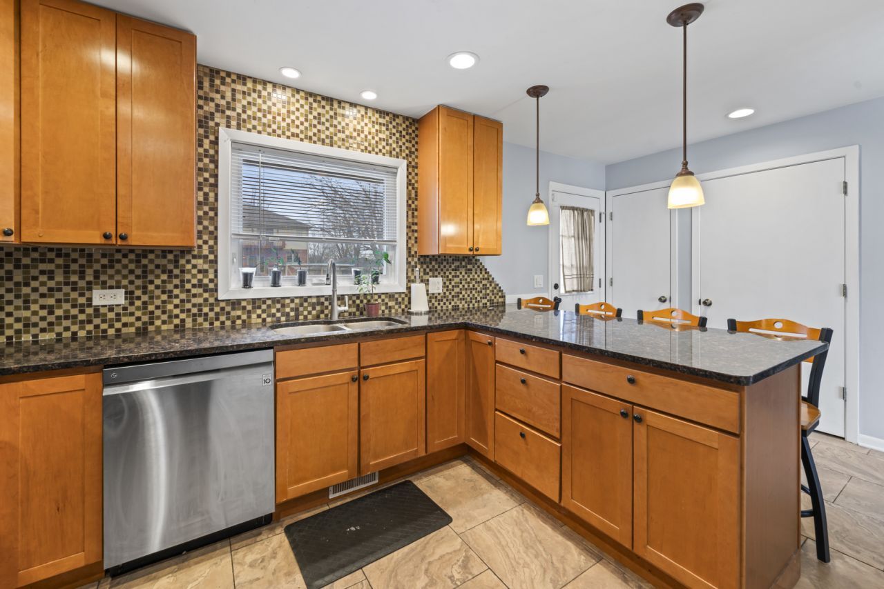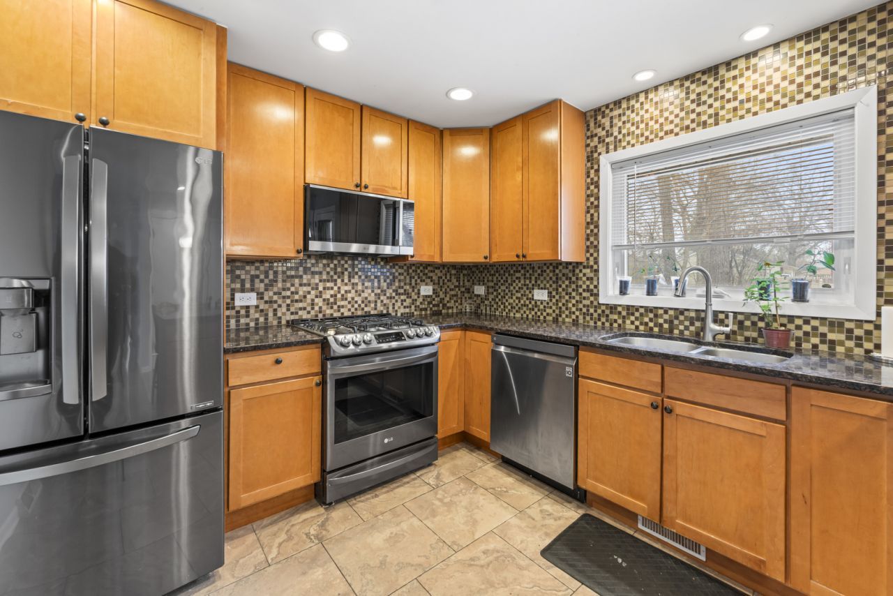 spectacular 3-bedroom, 2-bath split-level is in move-in condition and located in a top-tier school district featuring AMOS ALONZO STAGG HIGH SCHOOL. BIG TICKET UPDATES: 2-YEAR-OLD ROOF, 4-YEAR-OLD DRIVEWAY, plus newer Windows, A/C, and Furnace for total peace of mind. kitchen featuring 42-inch Maple-Shaker cabinets, granite counters, brand-newer stainless steel appliances, and a huge island for your morning coffee. gorgeous hardwood floors flow throughout the living room and all bedrooms. LOWER LEVEL & OUTDOORS: The totally redone lower-level family room features a cozy fireplace, new floors, full bath, and laundry. Ample storage is available throughout, including a 4-foot high crawlspace come see it yourself!