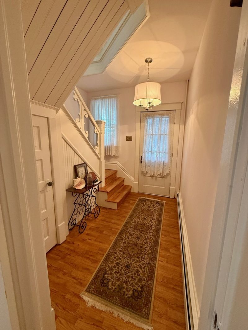 Historic Farmhouse Charm with Modern Updates on 1/3 Acre! Step into timeless character and modern comfort in this beautifully maintained historic farmhouse-style, two-story home filled with original architectural wood details, stunning moldings, and rich hardwood floors throughout. The repainted interior offers bright, welcoming spaces including a sunny living room and a cozy family room featuring a wood-burning fireplace with brick surround. A spacious dining room with charming alcove provides the perfect setting for gatherings and entertaining. The kitchen includes a walk-in pantry and opens to a beautiful three-season room with wood ceiling, featuring a relaxing hot tub/spa - perfect for unwinding year-round. Upstairs you'll find four bedrooms and the primary bathroom, offering plenty of space for family, guests, or a home office. This home has been thoughtfully updated with a fully replaced roof in 2024 and freshly painted exterior, making it truly move-in ready. Situated on 1/3 of an acre, the partially fenced yard features grapevines, apple trees, and pawpaw trees, along with a two-car detached garage with a 220 electric outlet, and an authentic, log cabin-style storage shed facing the park. This unique property combines historic charm, modern updates, and beautiful outdoor space - a rare find!