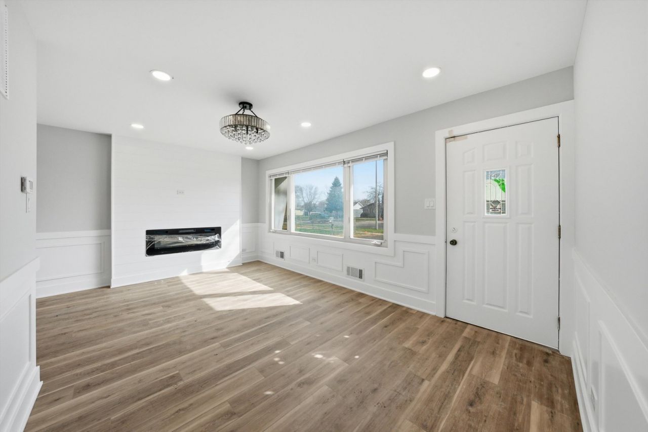 Freshly updated 3-bedroom, 2-bath home now available with a primary suite. Step inside to find a spacious living area filled with natural light and LED can lights, shiplap detail wall with fireplace complemented by new vinyl floors and fresh, neutral paint. The updated kitchen features, quartz countertops, subway tile backsplash, white shaker cabinets with ample storage space, ideal for cooking and entertaining. The bathroom shares similar and stylish finishes. The exterior features a 1.5-car detached garage providing plenty of parking and storage and a great yard for all those family get togethers. Welcome to your new home.